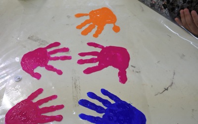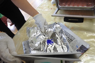 年少組はプラ版に手形をとり