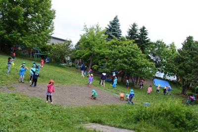 今週に入って、ずっと雨の日が続いています。今日は明日のミニ運動会のために子ども達全員で園庭の石や松ぼっくりを拾いました。石につまずいたり、足がグギッとならないためです。