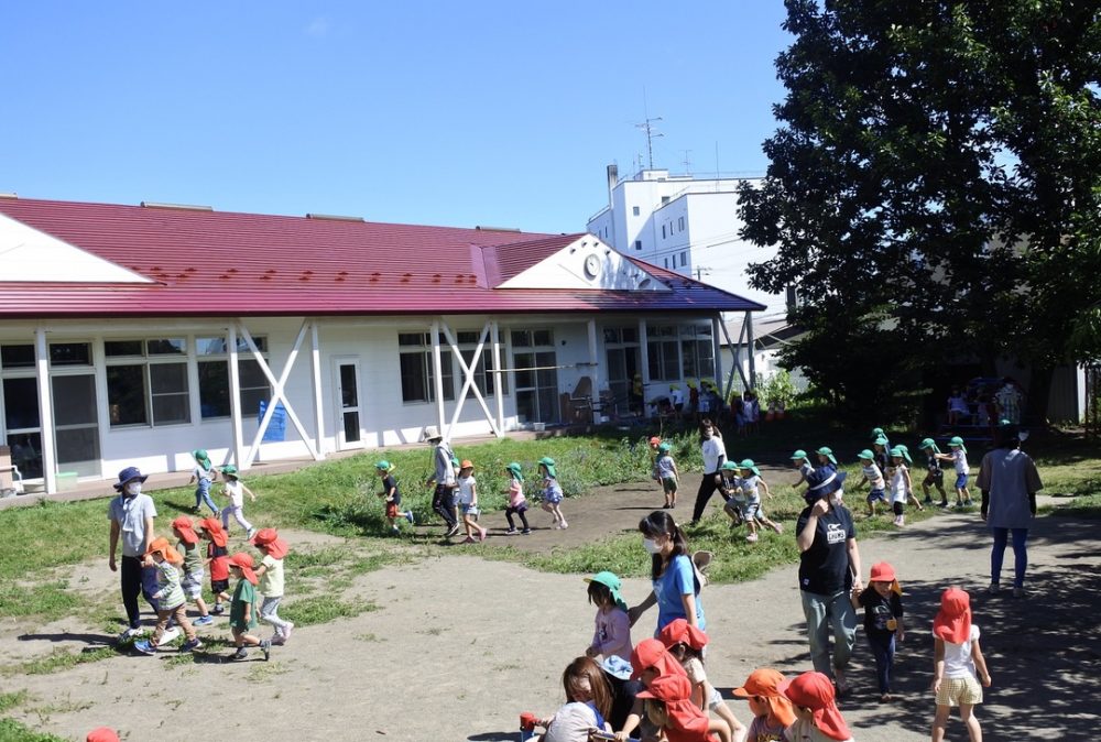 避難訓練6回目は、北海道シェイクアウトに参加し、外で遊んでいる時に地震が発生した時の練習をしました。(本当は9月1日10時でしたが北見幼稚園では今日行いました)