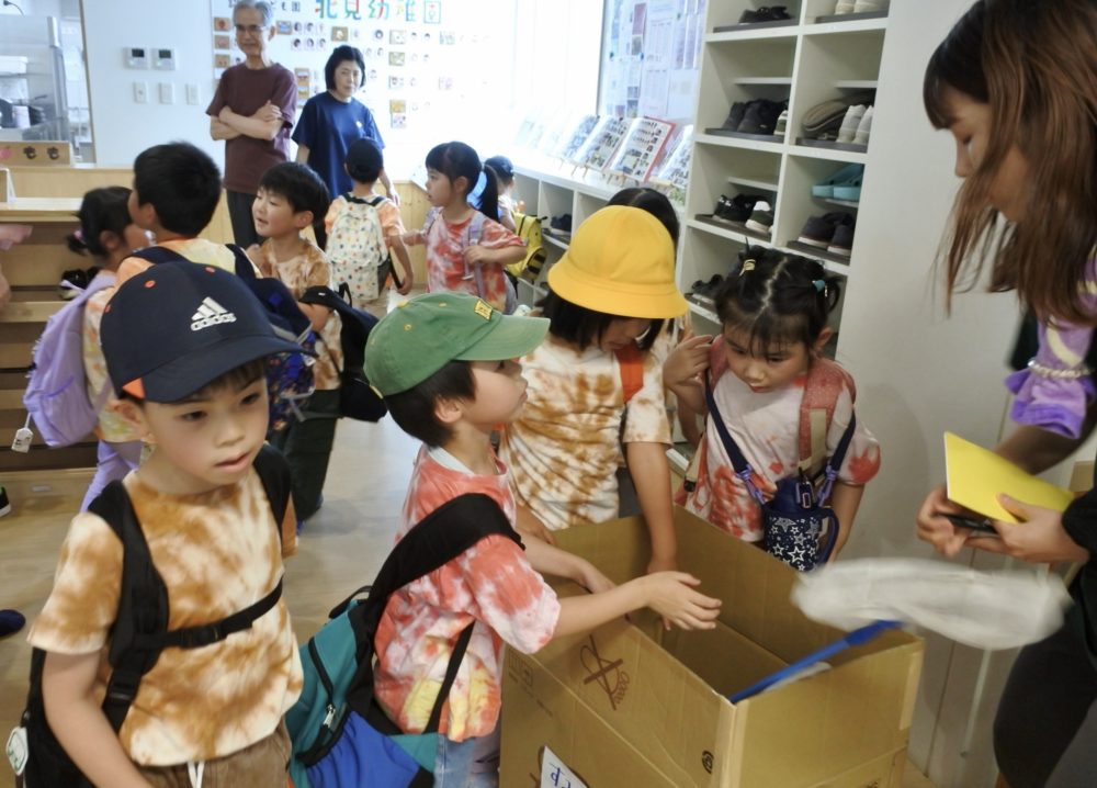 持ってきた虫かごと虫あみを箱に入れて〜
