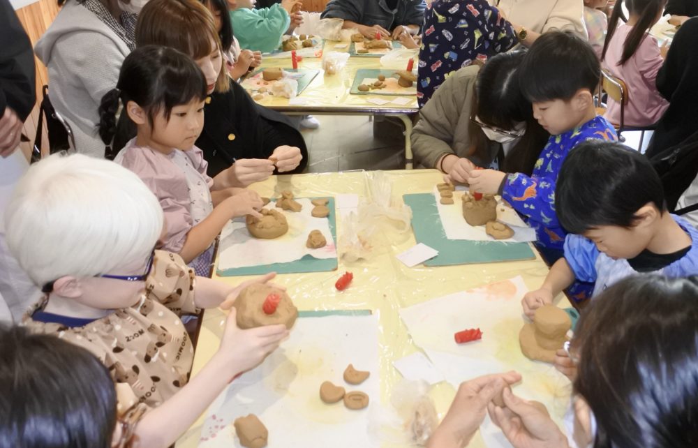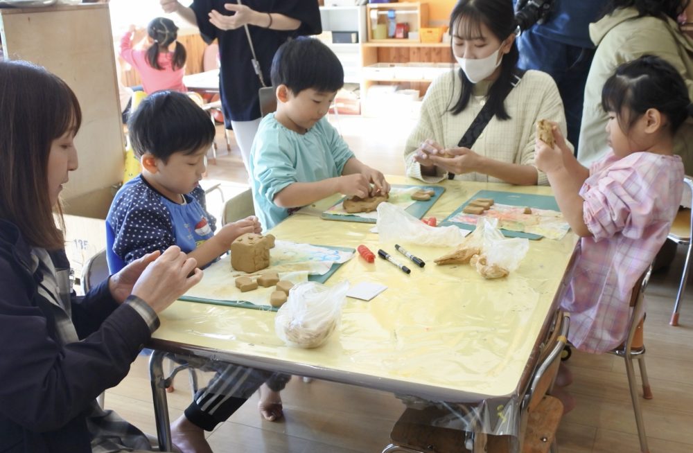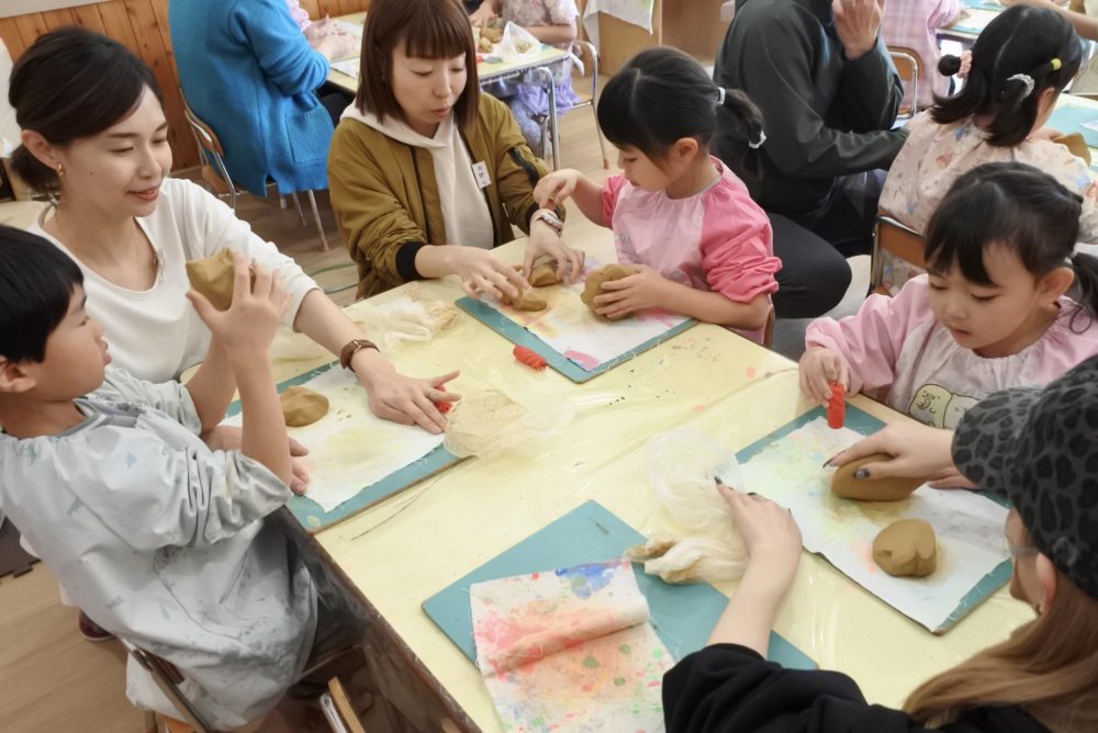 お母さん達用の粘土もあるので、お母さん達も色々と作り始めました
