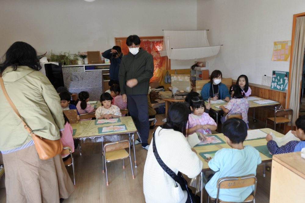 保護者の方々が来園し、9:30から年長組のクラスへ