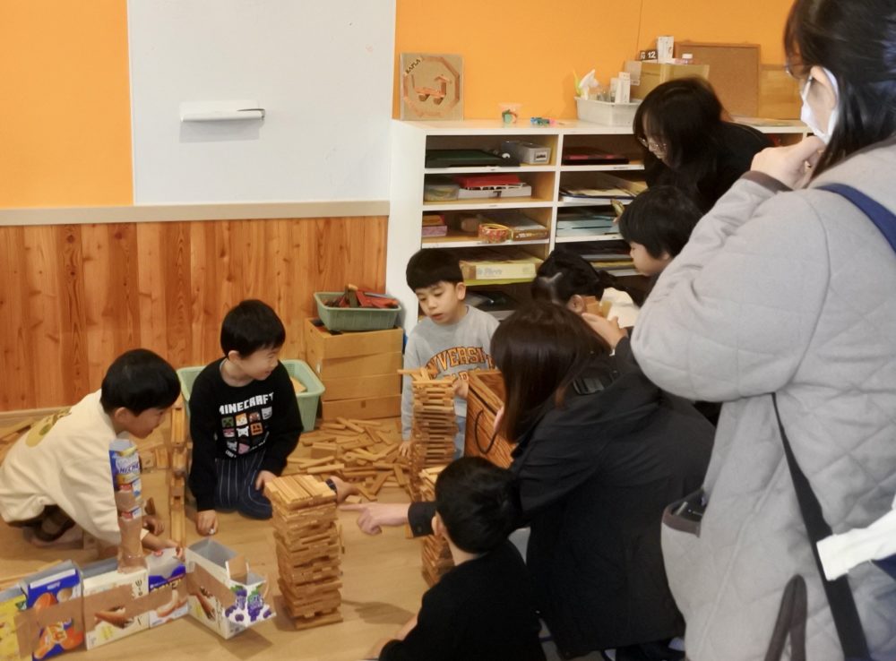 お部屋では、フエルト製作や積み木をしたりカードゲームで遊んだりする様子を見てもらいました