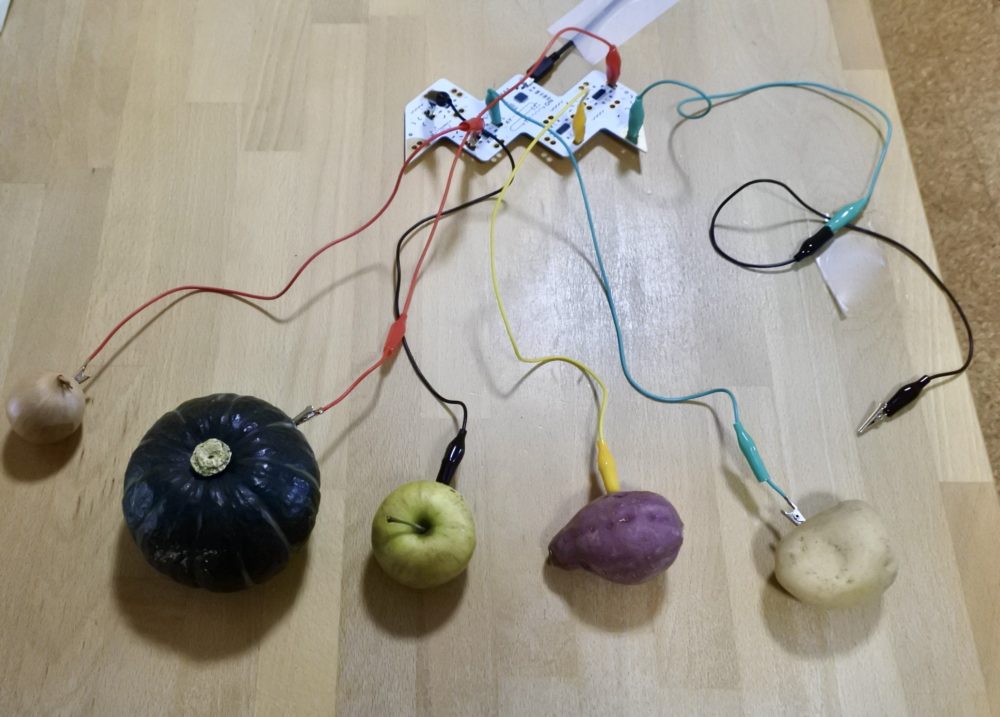 野菜を触って出る音を楽しんでます