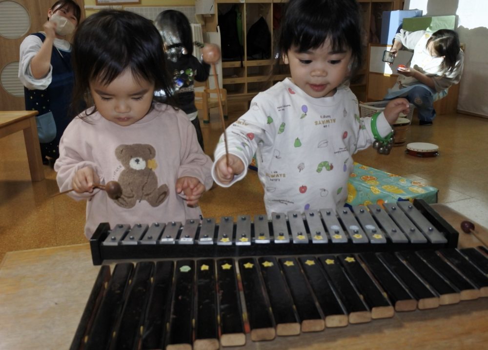 マラカス・タイコ・タンバリン・木琴・・色々な楽器をならしてみよう!