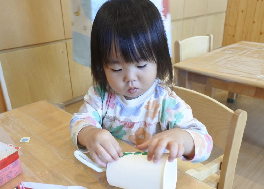 Hちゃんは、1つ1つシールを貼って、じっくりと時間をかけて作っていました