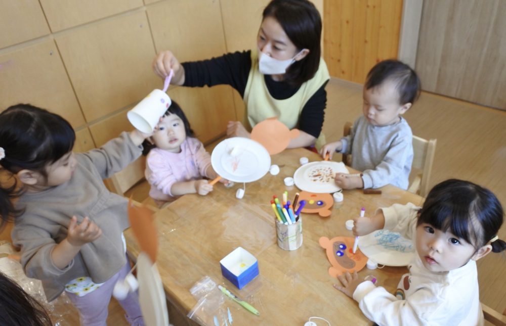 もも組は少人数で音を楽しむことができるように、「楽器を作るグループ」と「音を楽しむグループ」と2つに分かれました