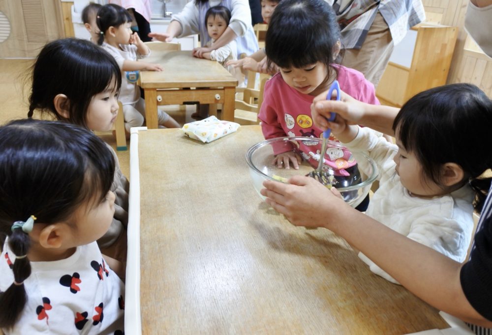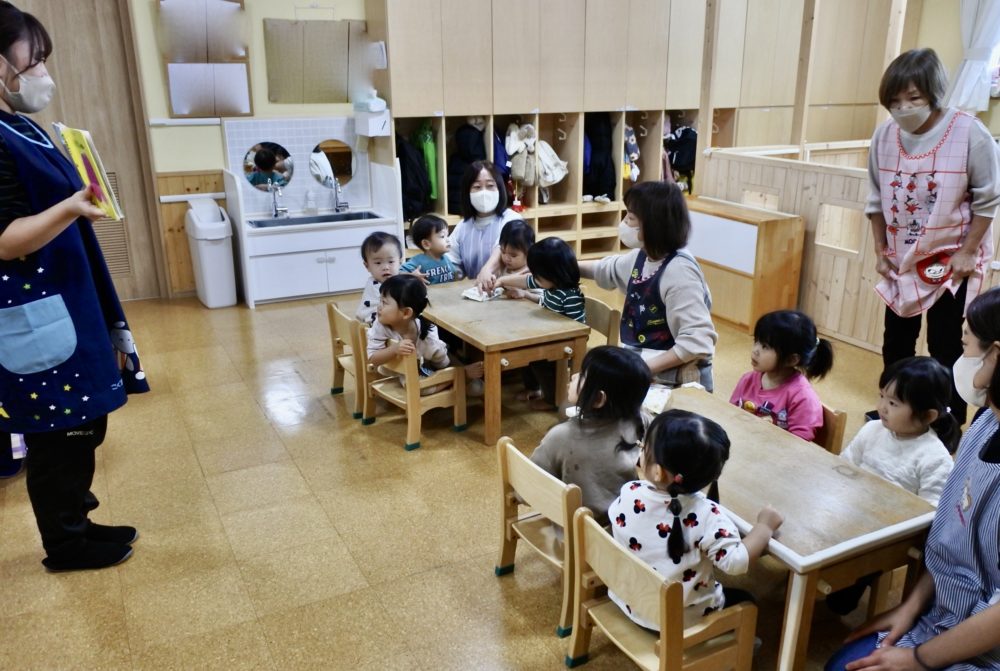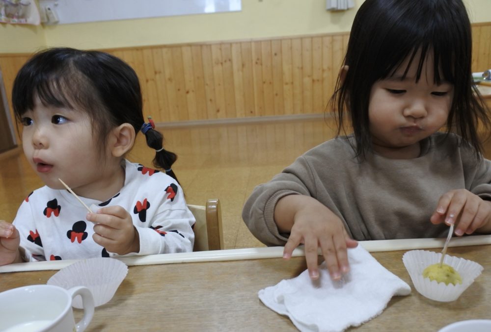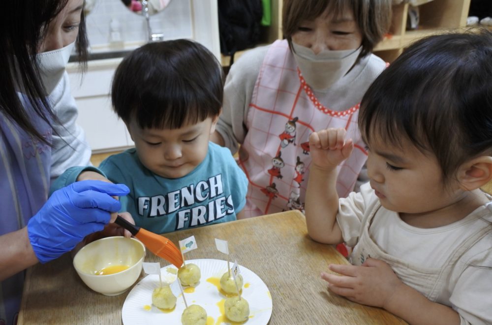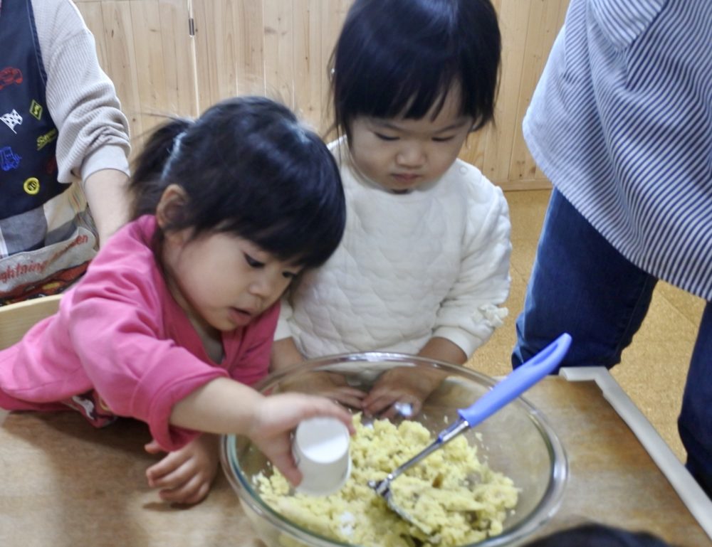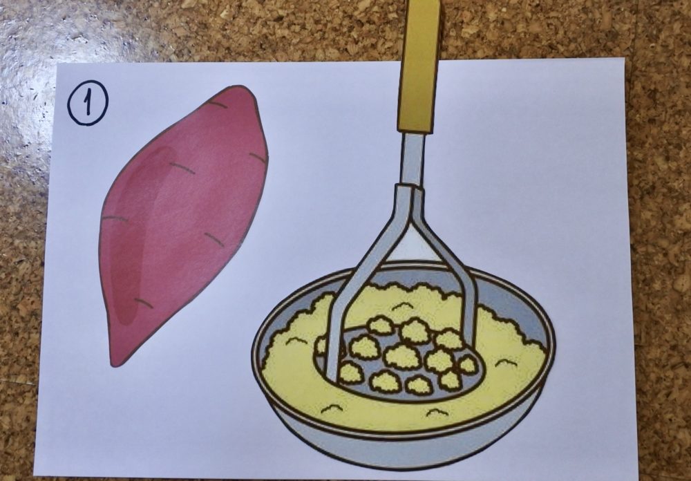 最初にS先生からおいもさんの絵本を読んでもらい、作り方のお話を聞きます