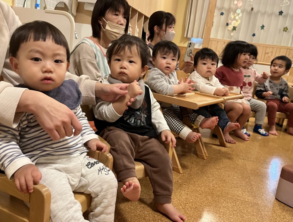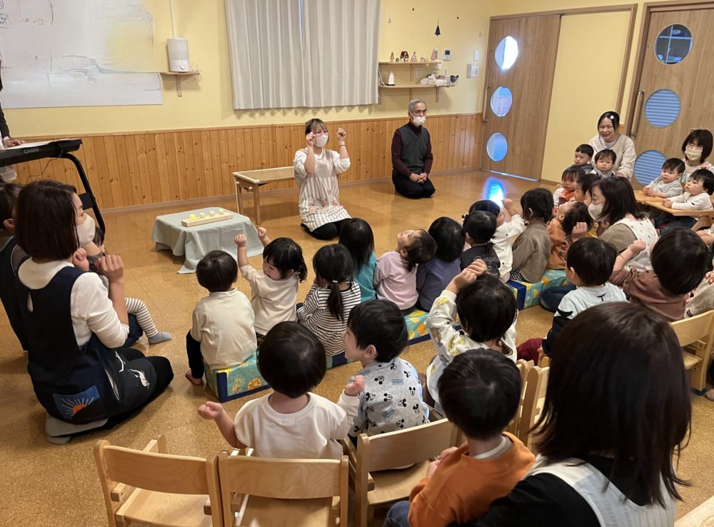 ちいさいひつじが めいめいめい🐏子ども達は手を羊さんの手のようにして、歌っていました