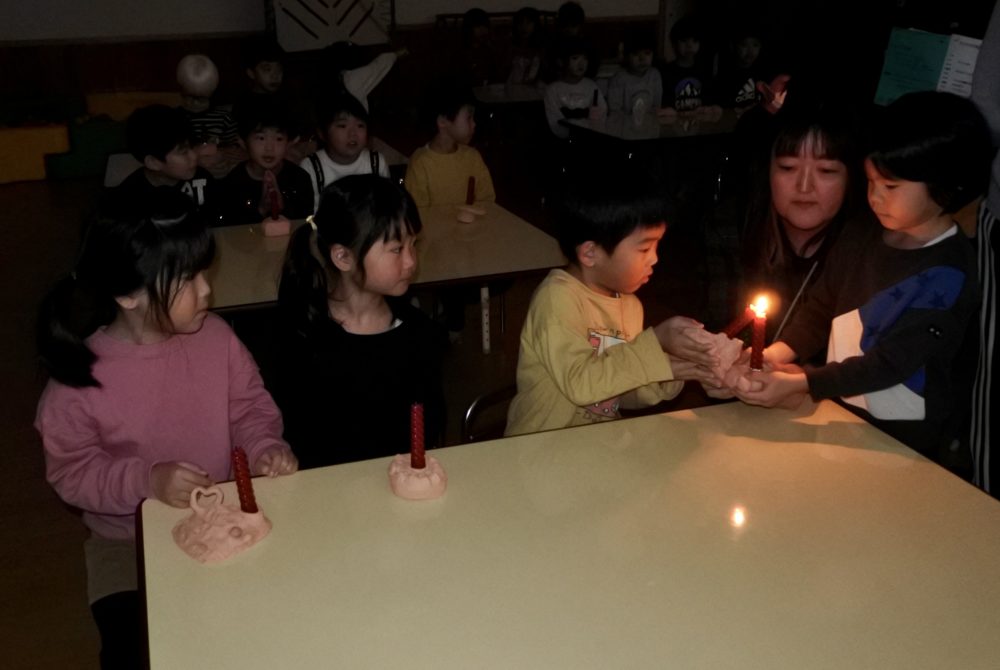 明日、教会でキャンドルサービスをしてクリスマス礼拝を捧げる年長組の子ども達