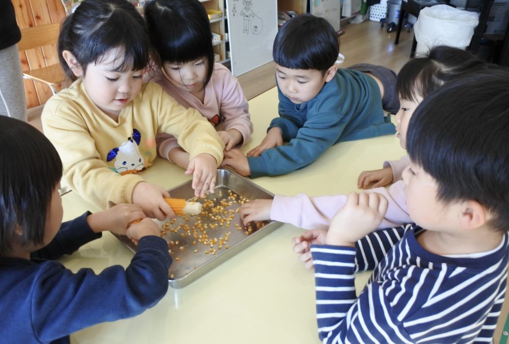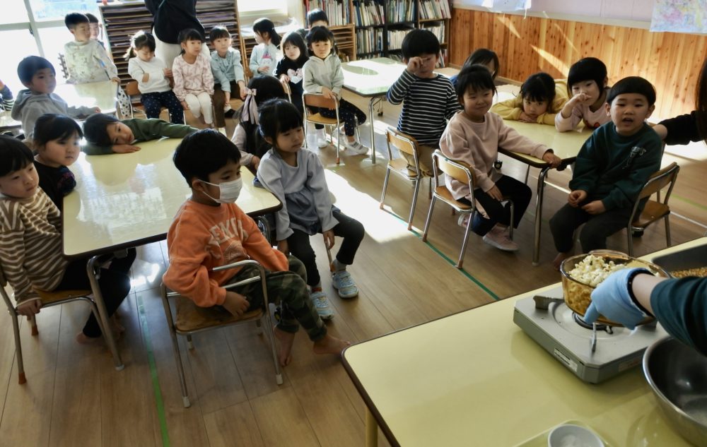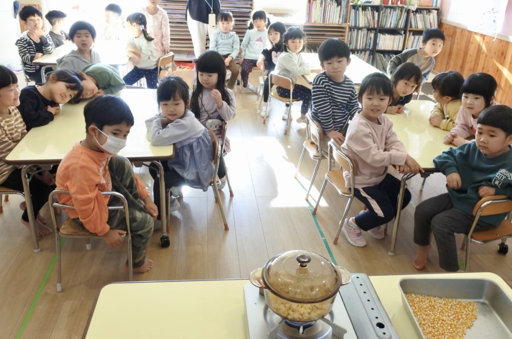 年中組も「ポップコーンを作るのを見て食べよう!」の日でした
