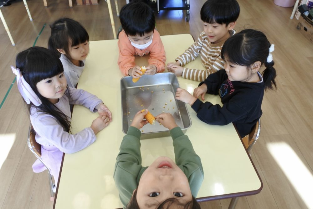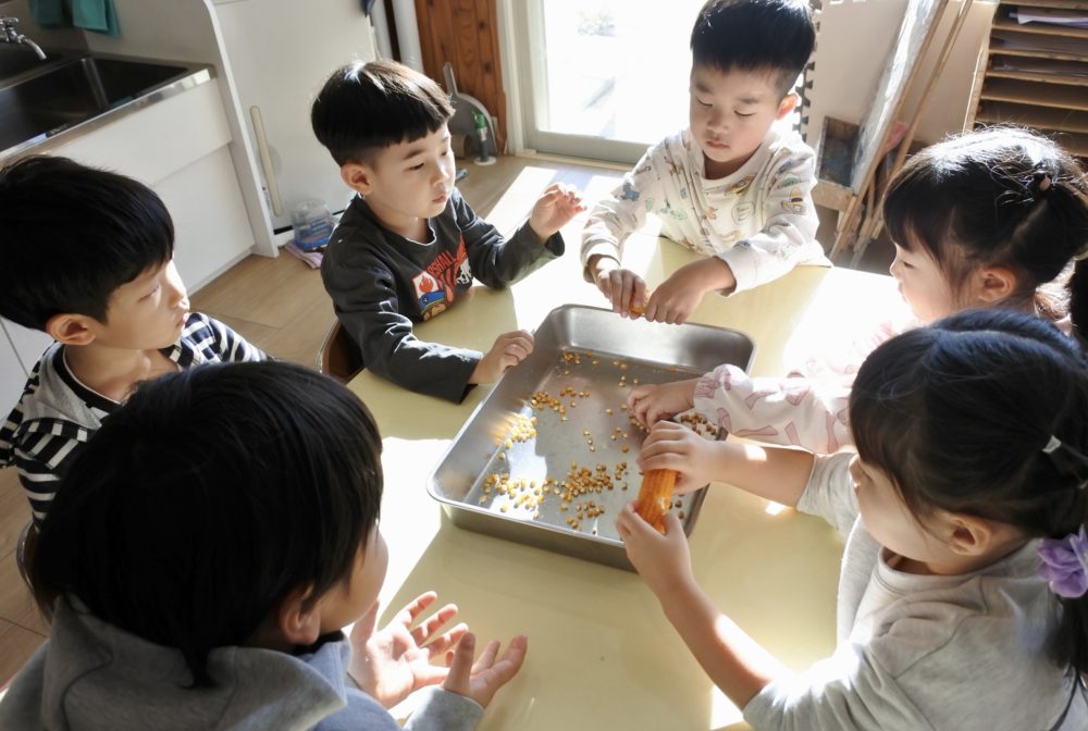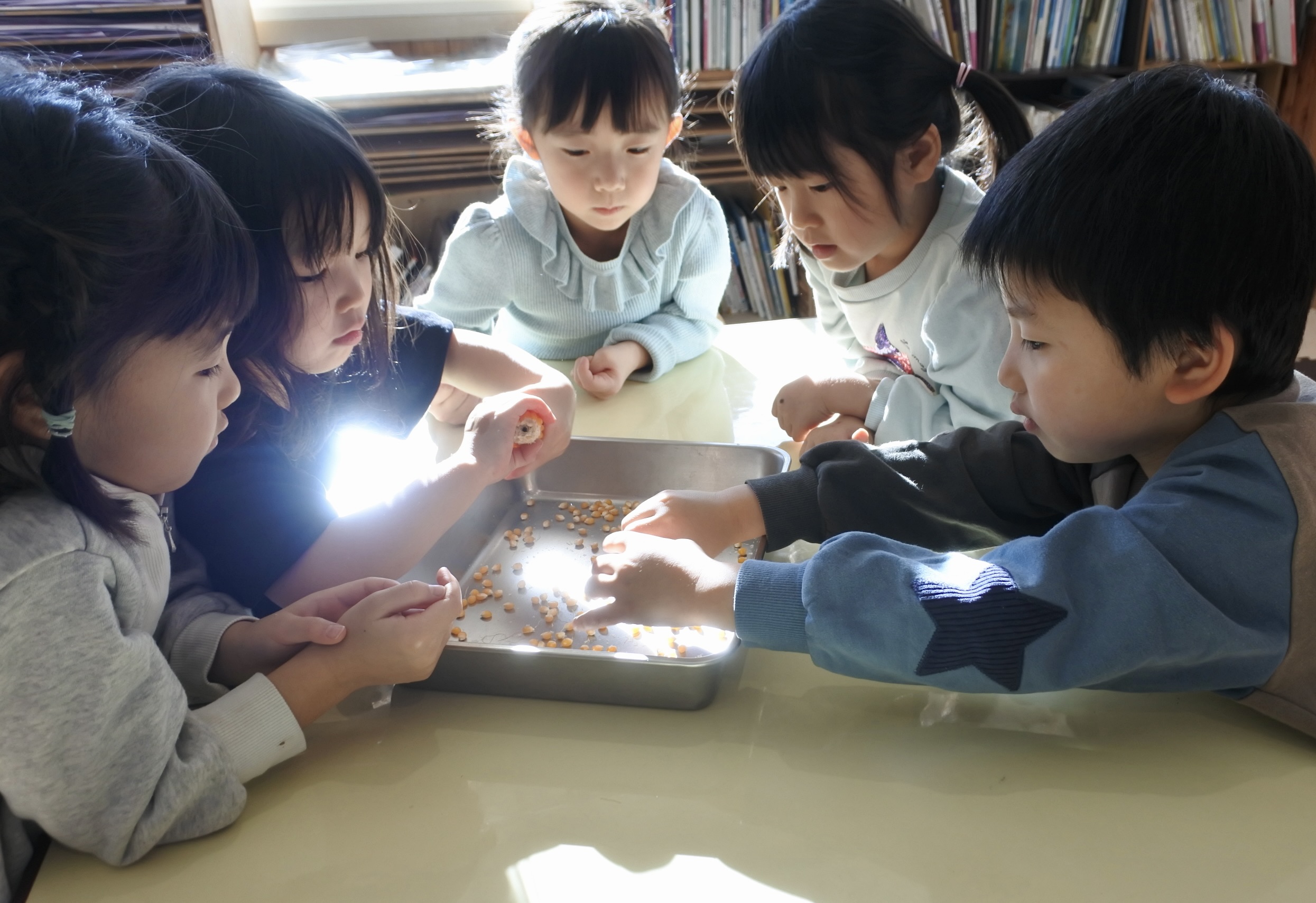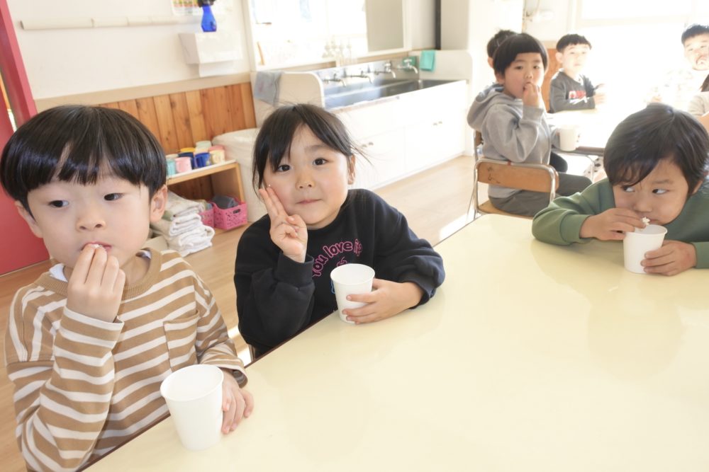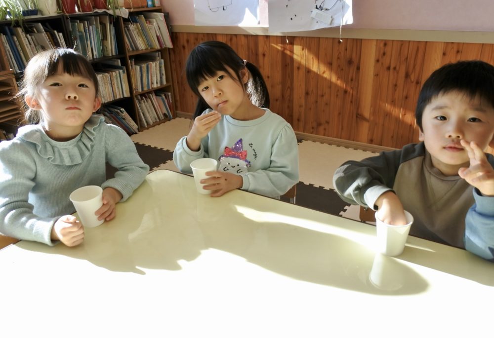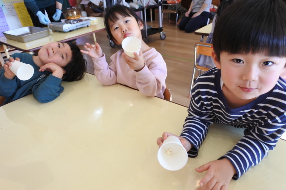年少組がポップコーンを作っている時から「いい匂い〜!」「早く食べたい!!」と楽しみに待っていたんですよね〜