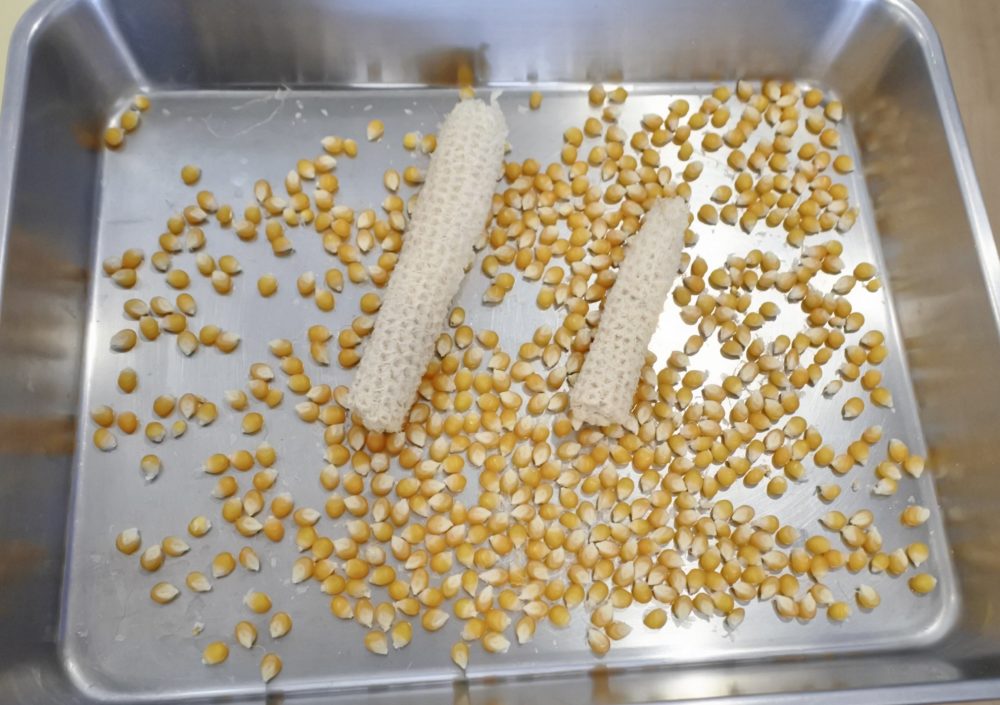 まず最初にポップコーンができるまでのお話を聞いて