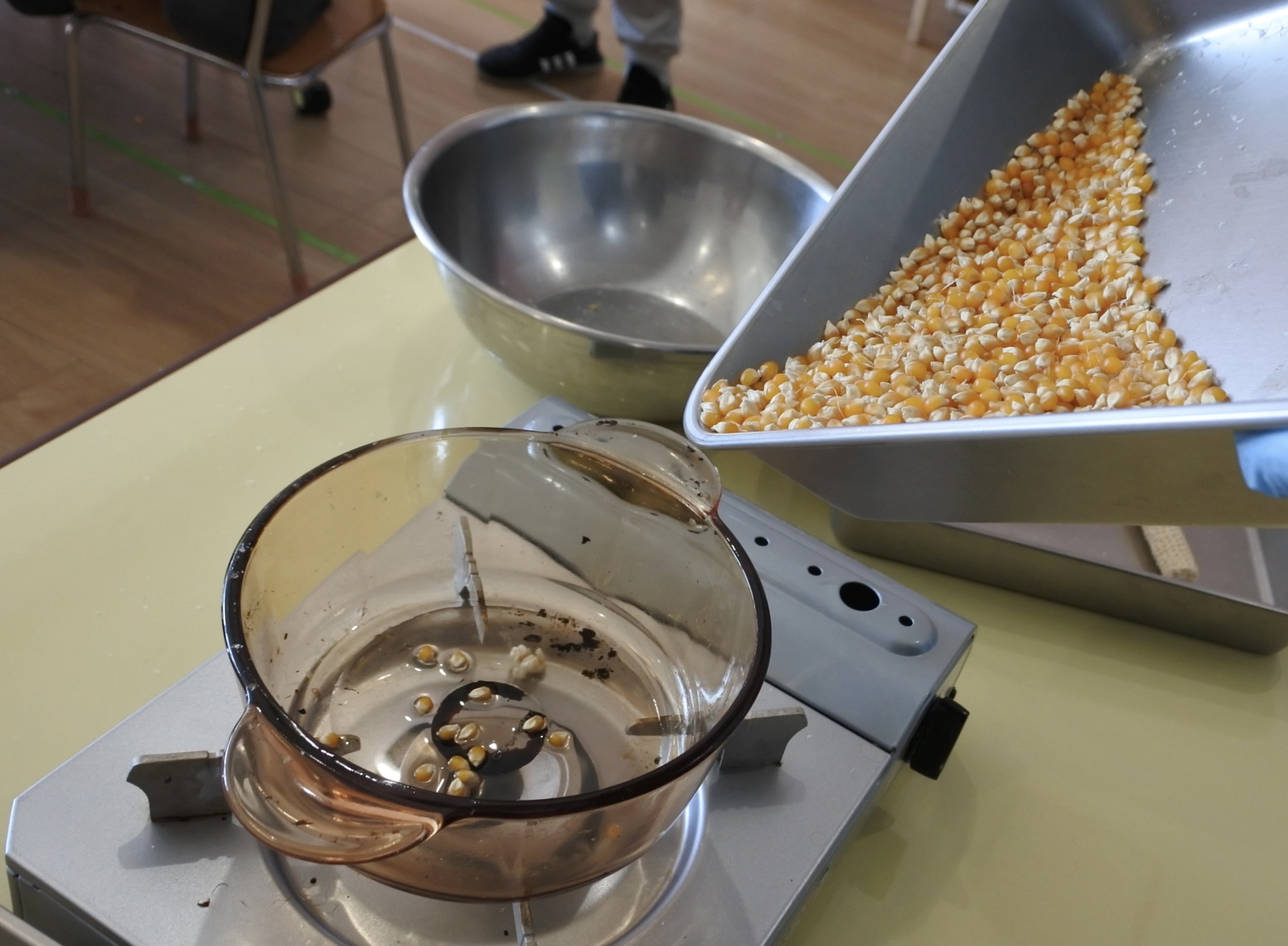 いよいよポップコーンの種がポップコーンに変身します!!