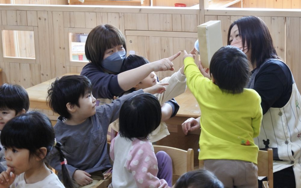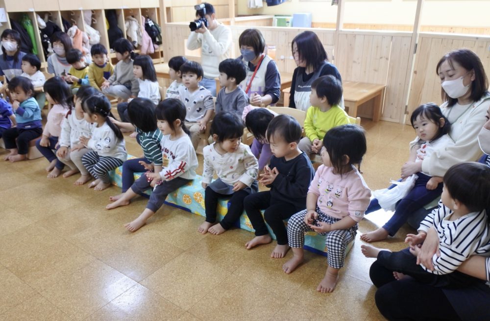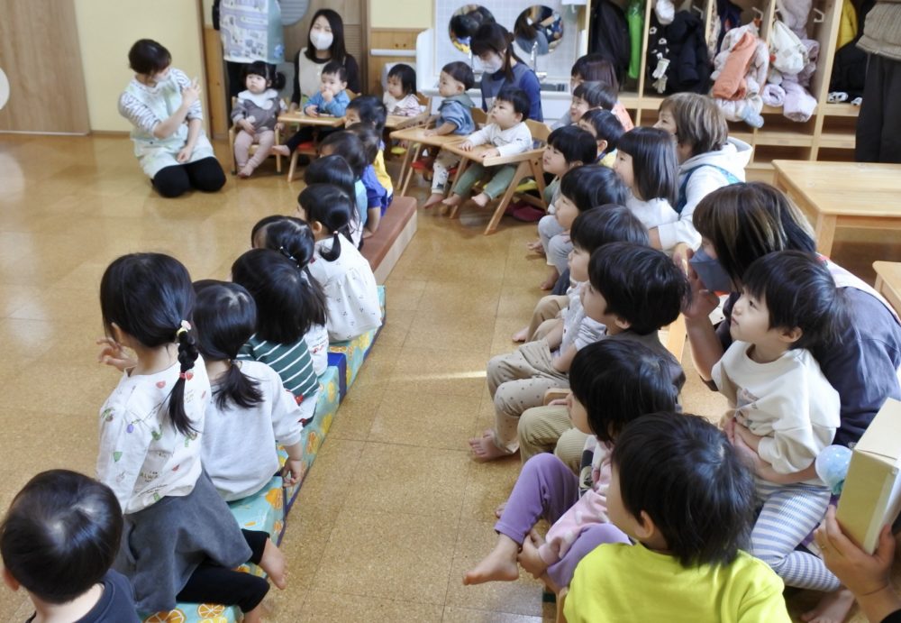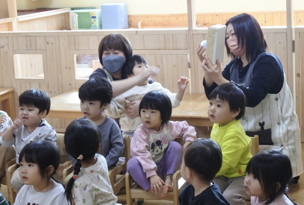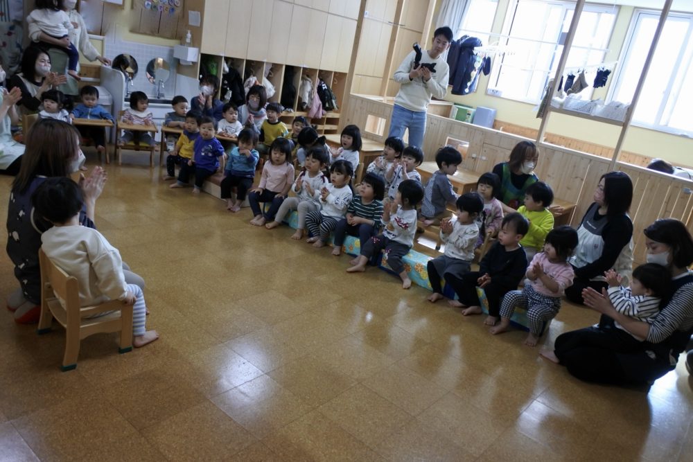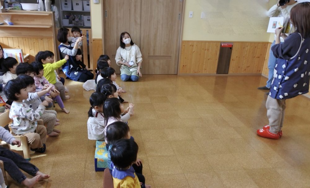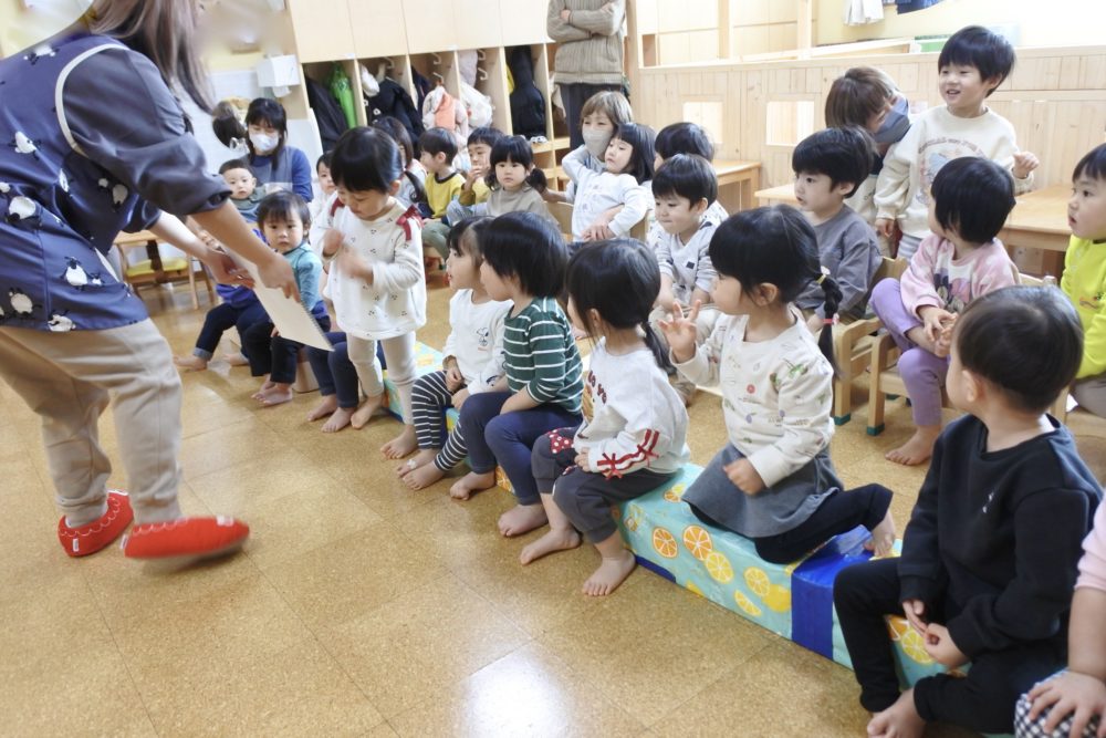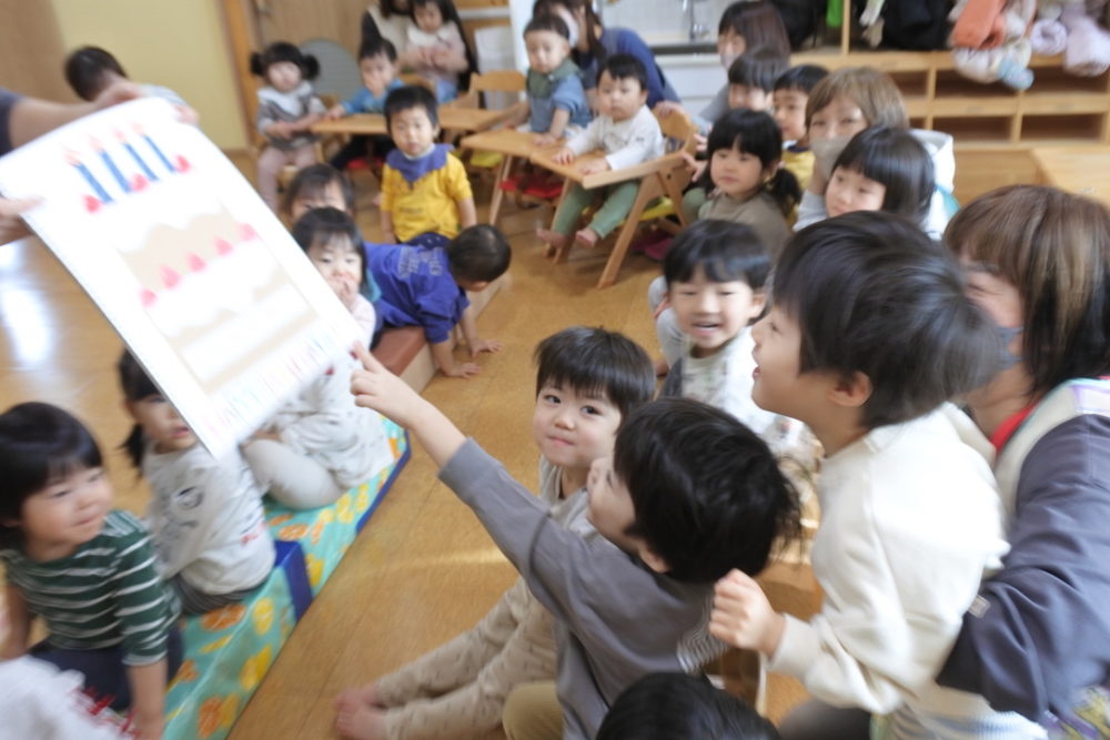 もも組に、みんなが集まり、これからお誕生会が始まります