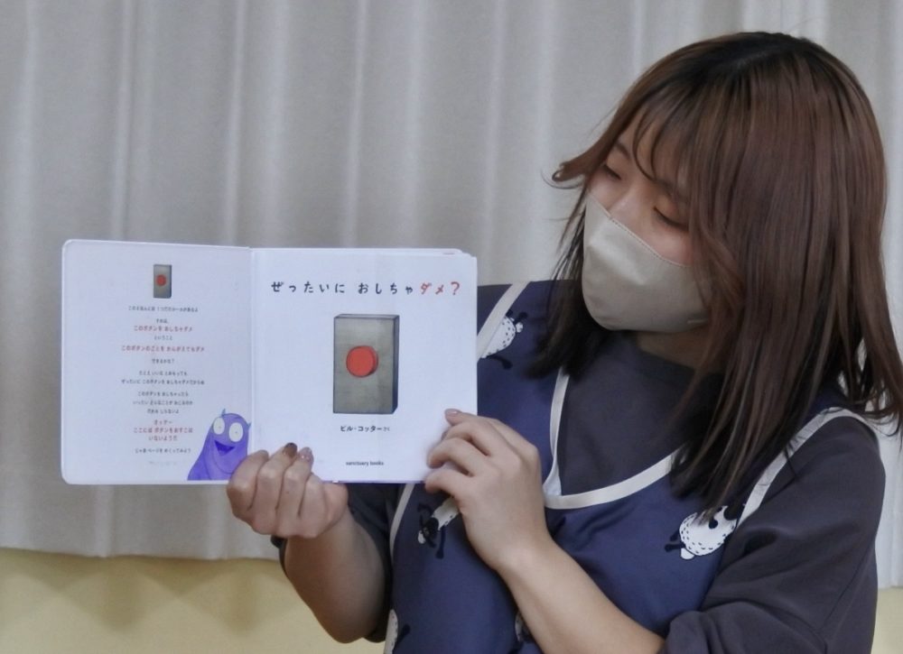 絵本をよんでから、本物のおしちゃダメのボタンが出てきました