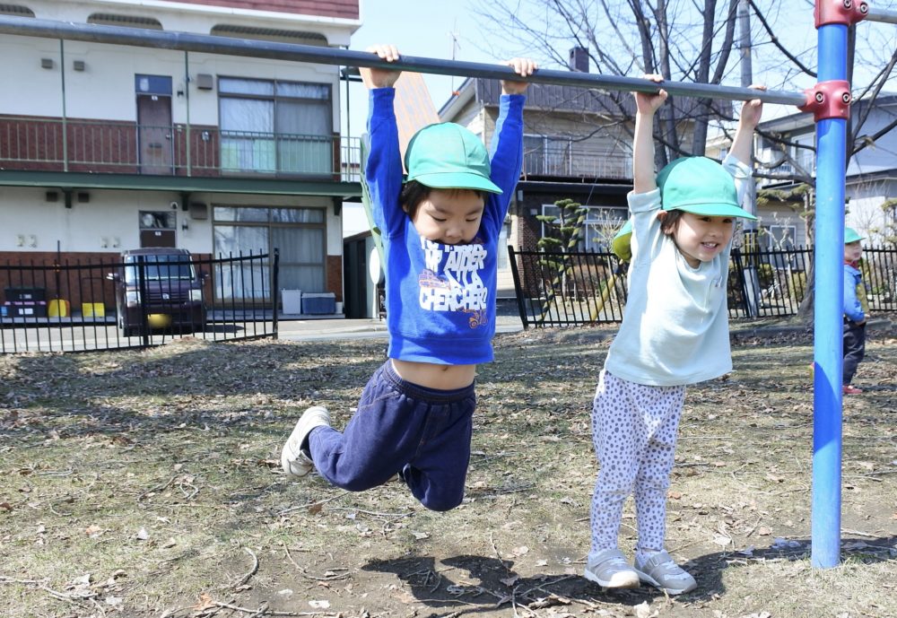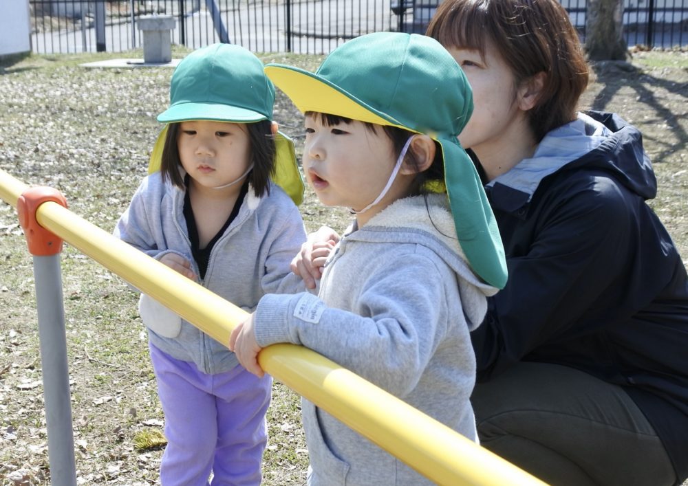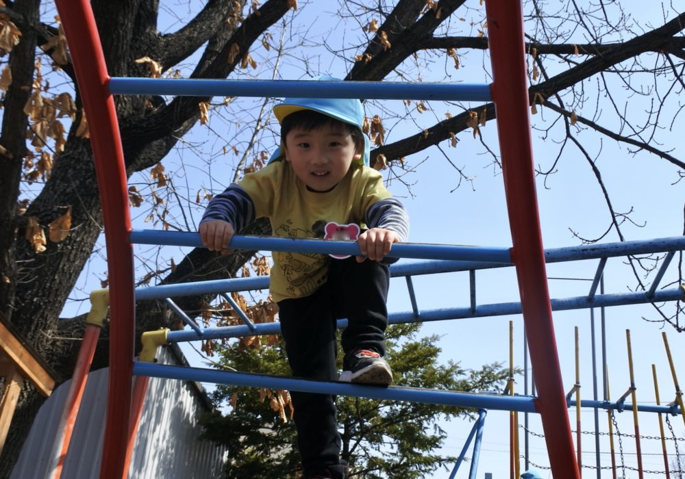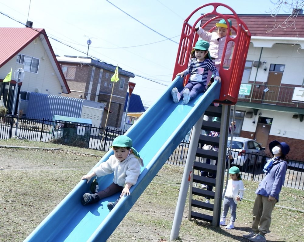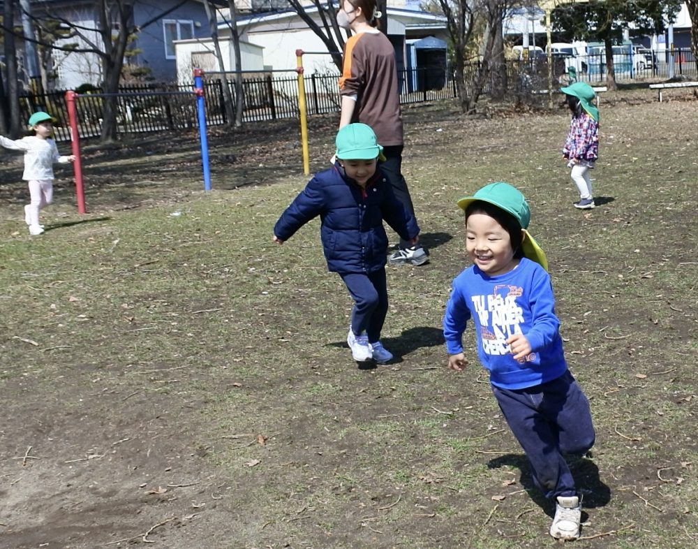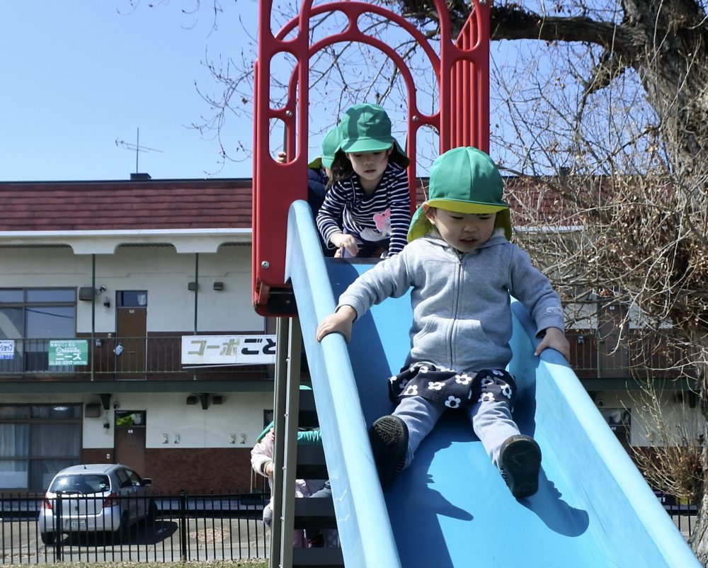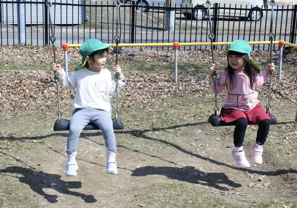 公園では、すべり台やブランコ、鉄棒にぶら下がったりかけっこをして楽しんでいました