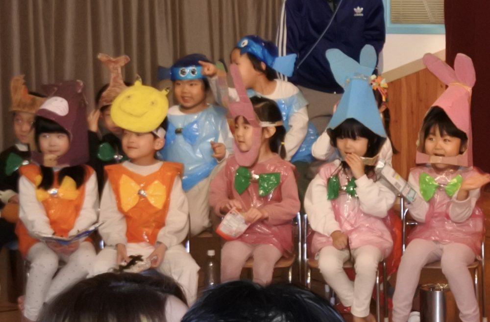 ゴミ問題・・・色々と考えさせられる大きなテーマですが、子ども達なりに遊びの中で考え取り組んできたことが劇という形になって、今日こうして観てもらうことができました