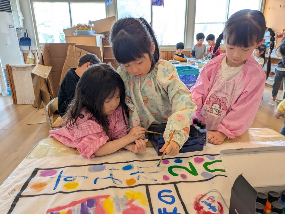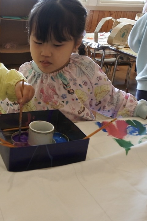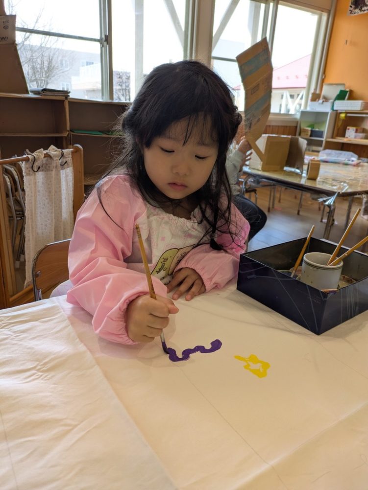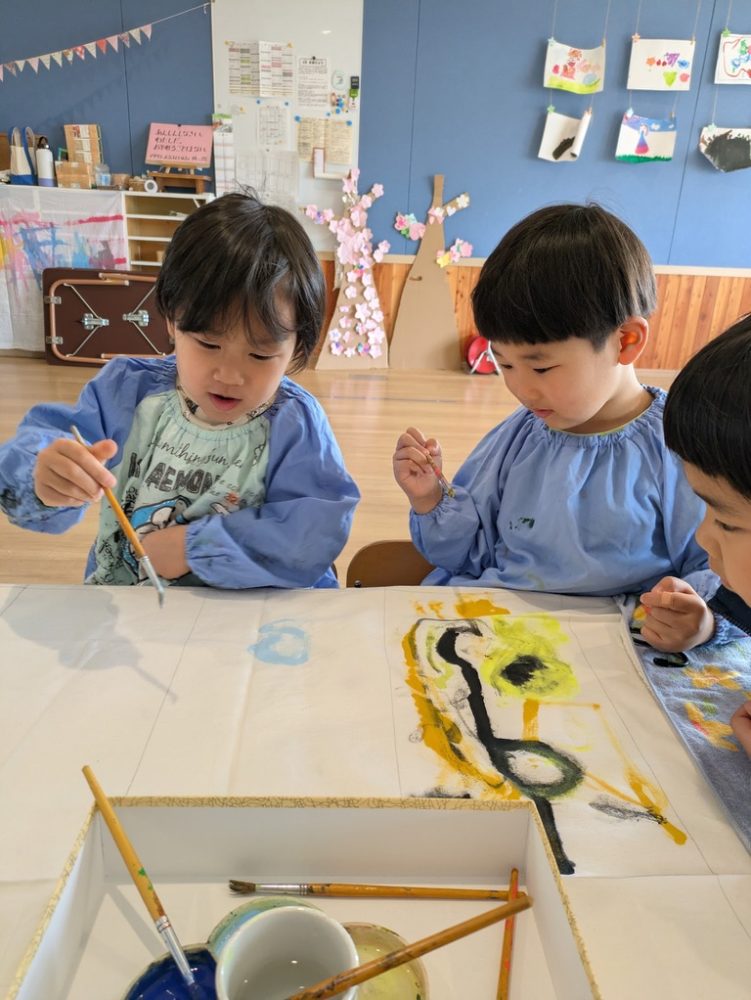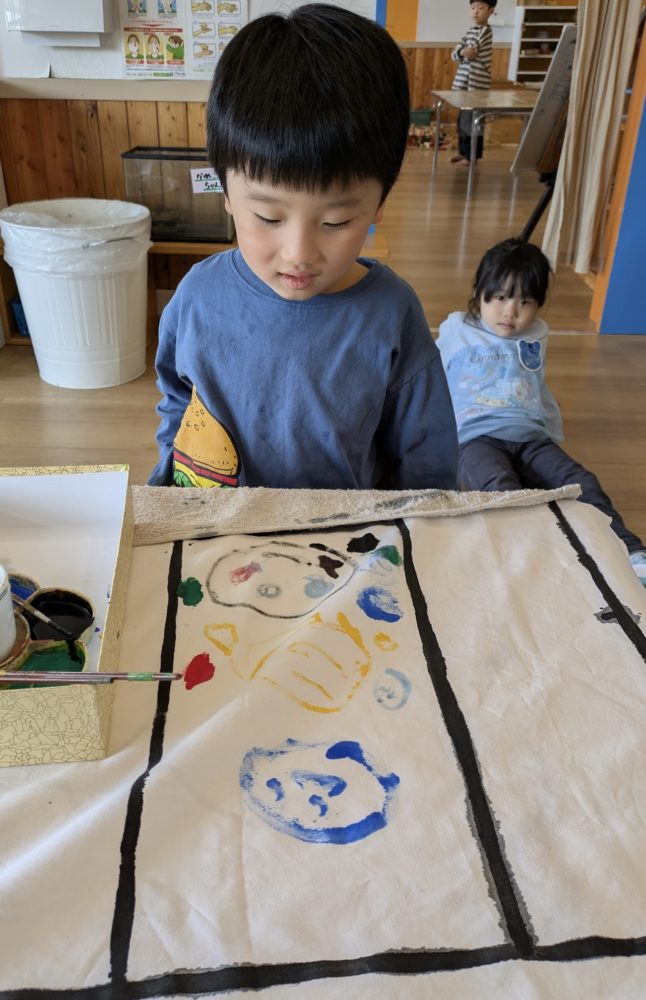 こうして、みんなで作ったこいのぼりができ上がり、今日は、これから園庭にあげま〜す🎏