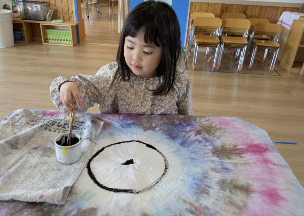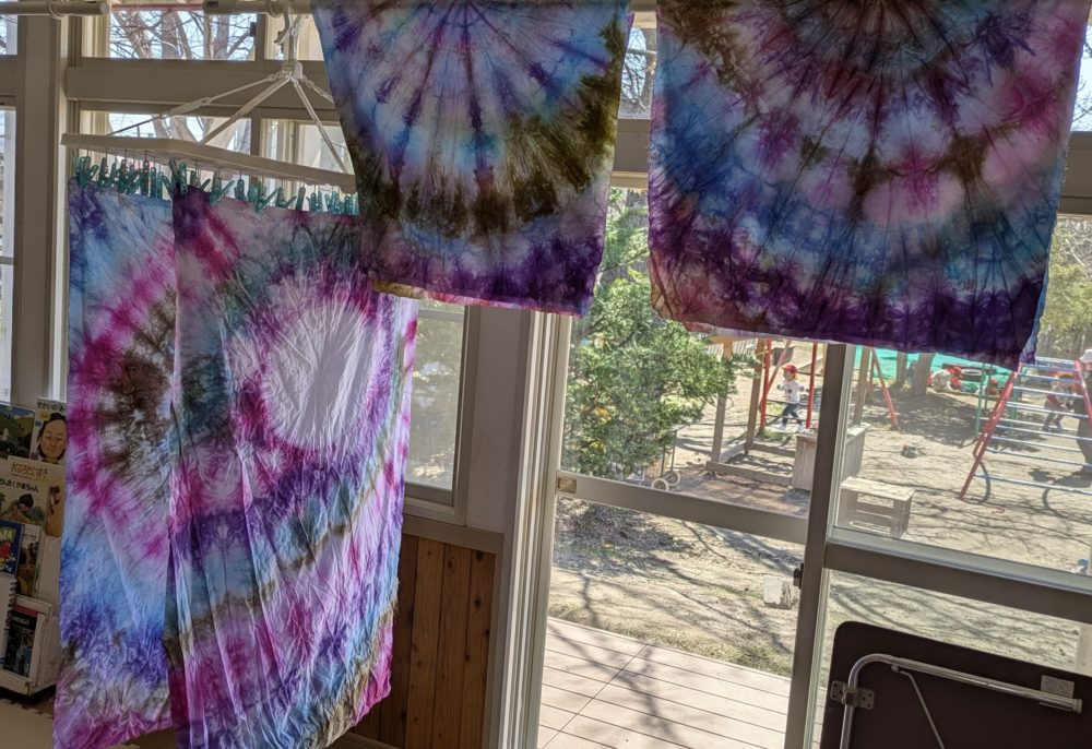 乾かしてひろげると・・・「わ〜きれい!!」とっても、綺麗に染まりました👏
