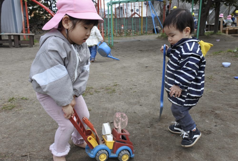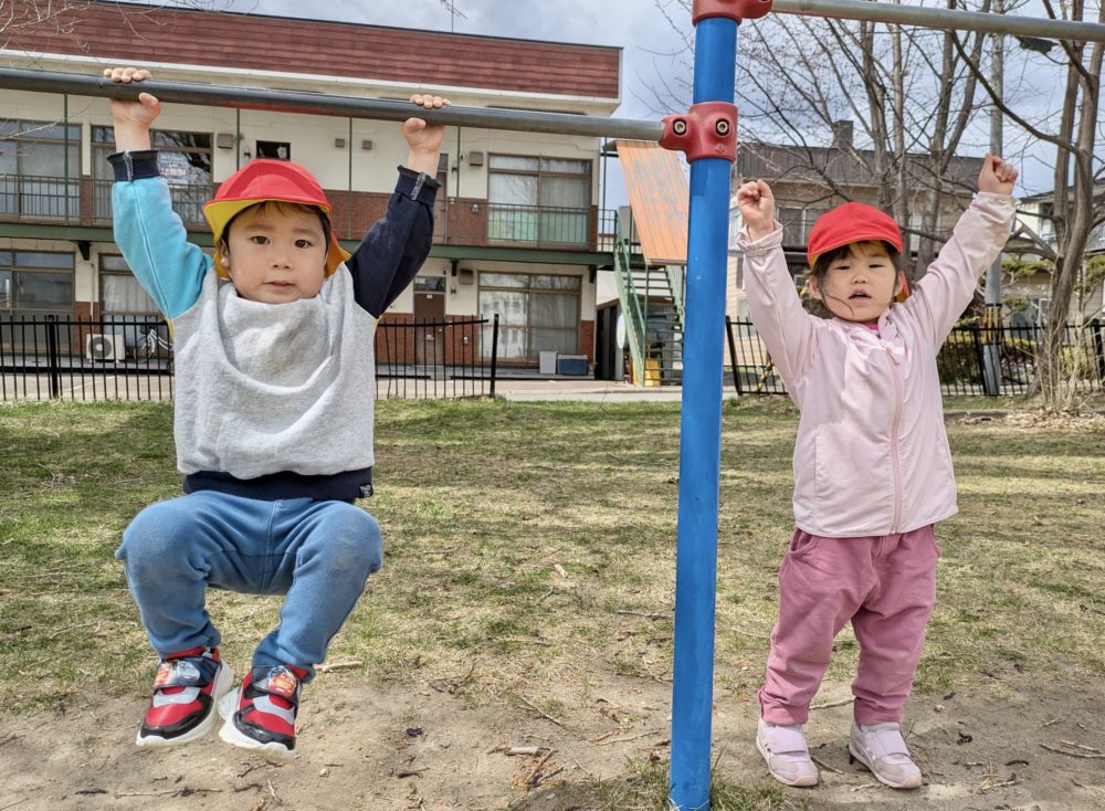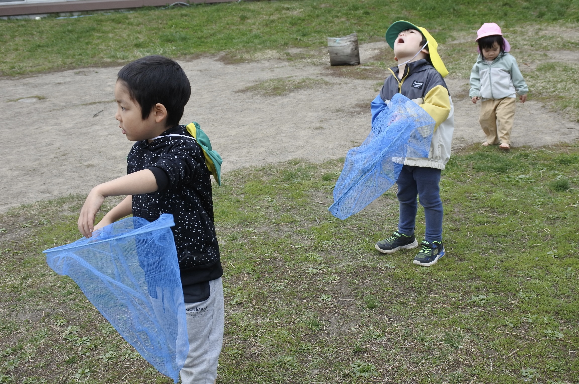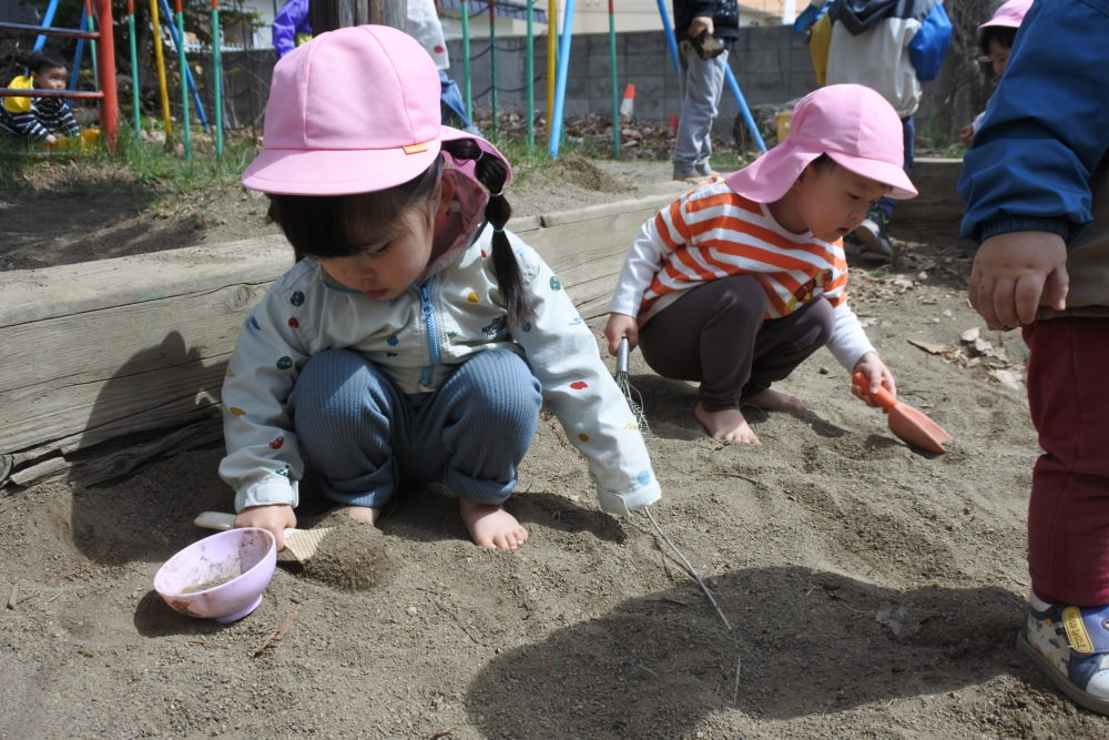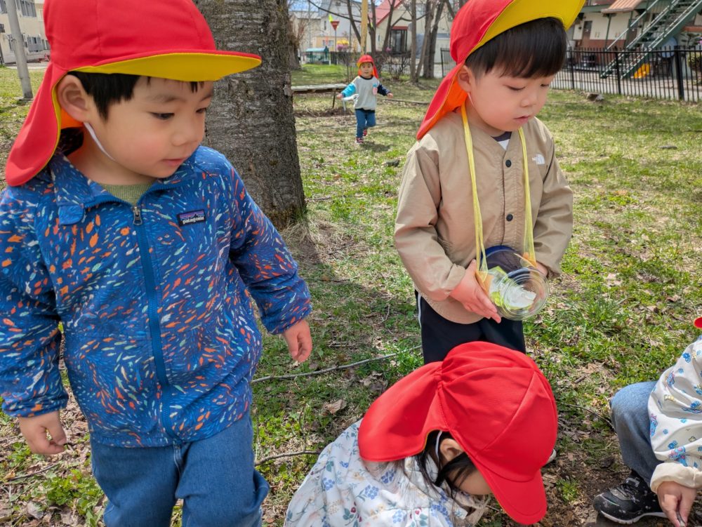 雲梯に挑戦したり、砂場で山を作ったり、虫網を持って虫探しに夢中の子もいました