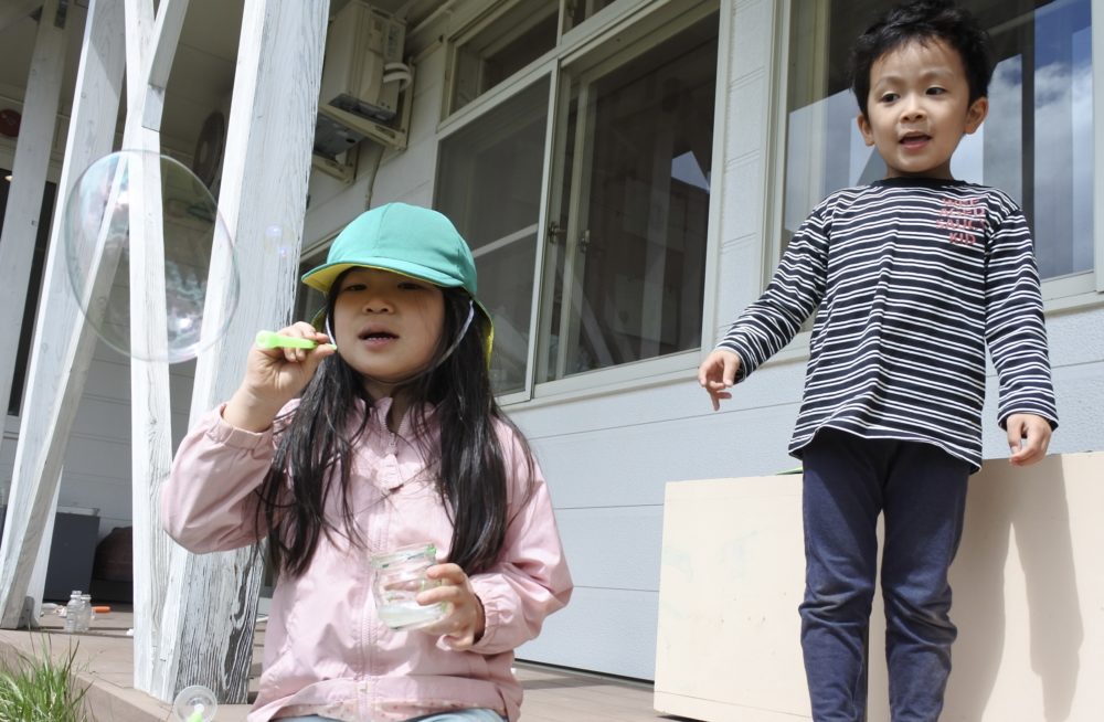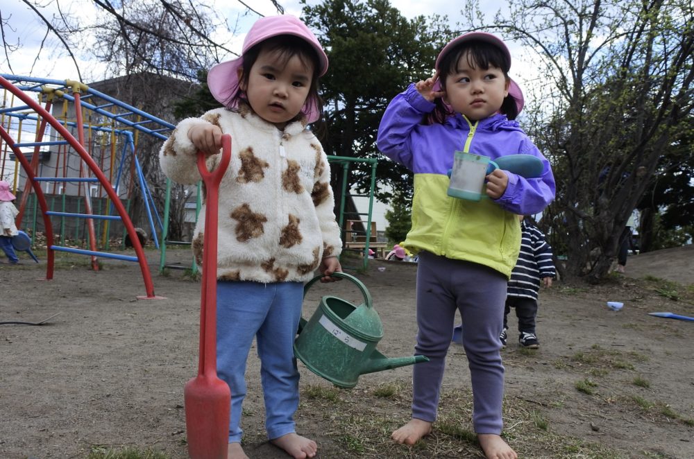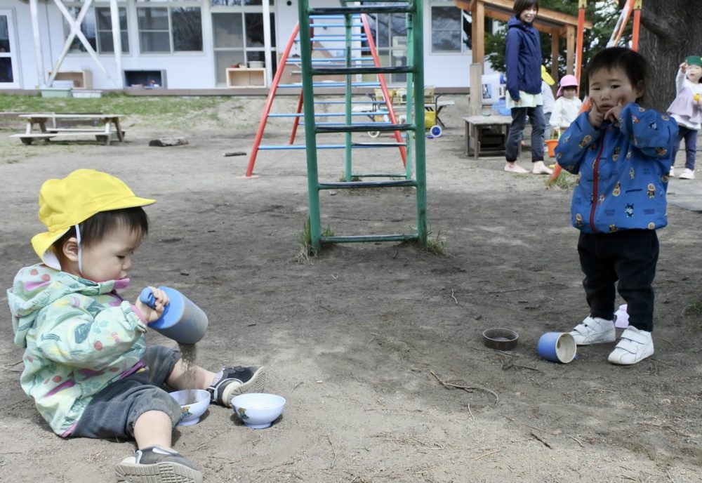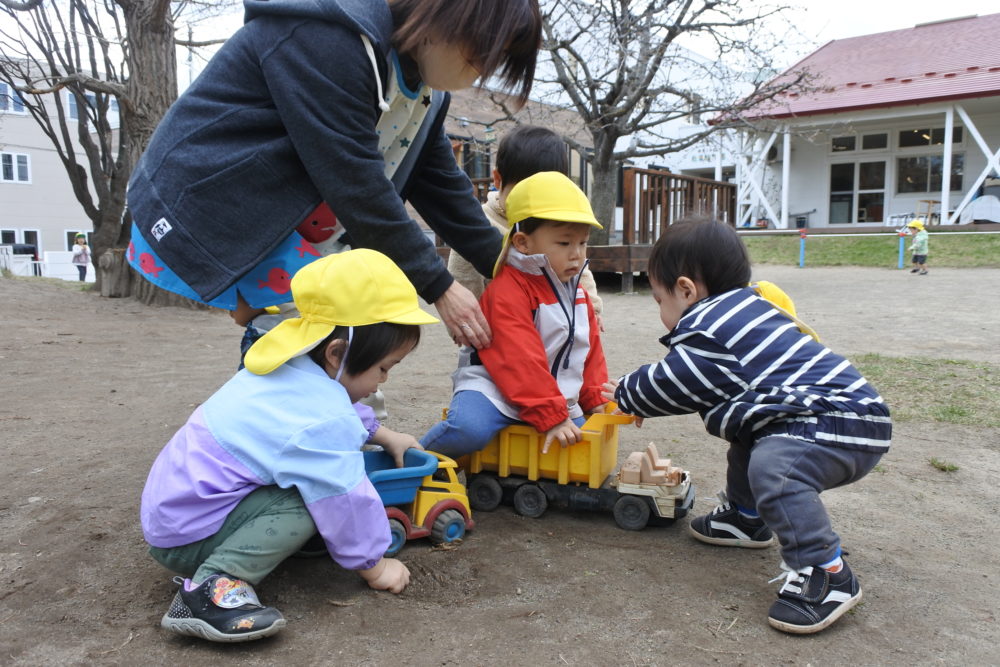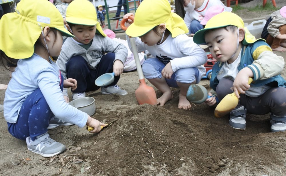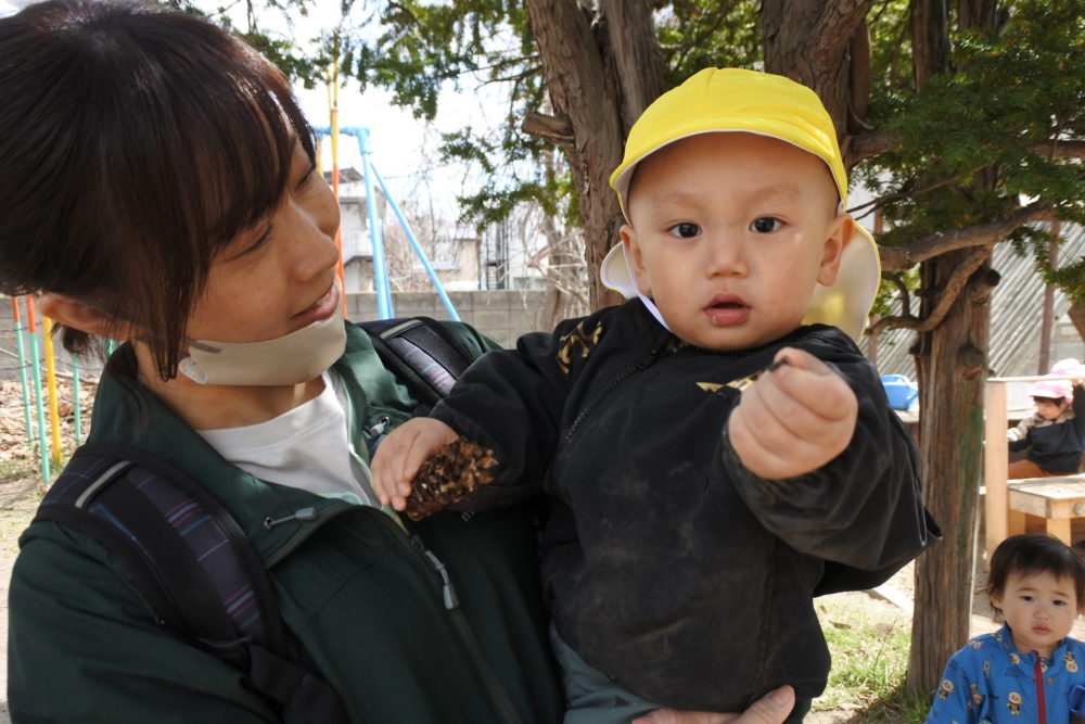 雲梯に挑戦したり、砂場で山を作ったり、虫網を持って虫探しに夢中の子もいました