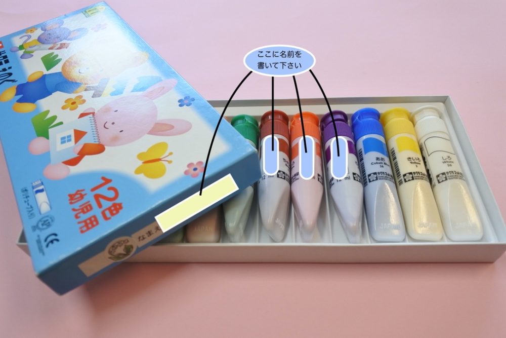 ・絵の具1本ずつに名前を記入