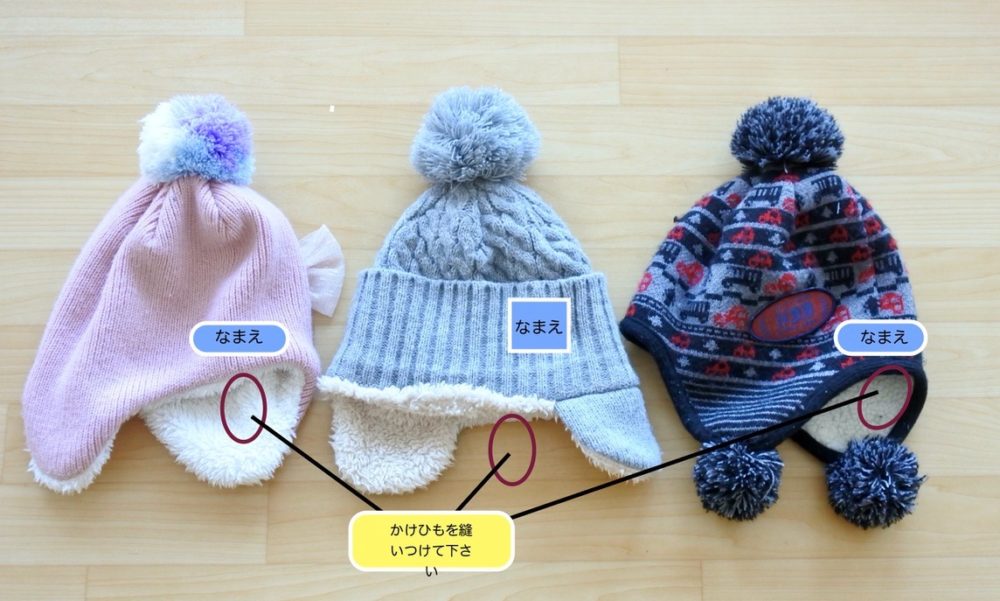 - 方法: 油性ペンのほか、お名前シール、アイロンプリント、別布の縫い付けなど、ご家庭で用意しやすい方法で構いません。