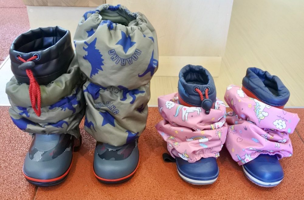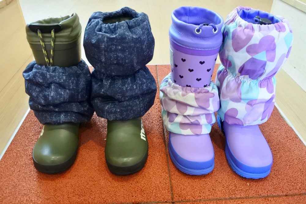 スノーブーツタイプは、脚絆の上げ下ろしが少し難しく、お子さまが一人で着脱する際に苦戦してしまうことがあります。「自分でできた」という自信につながるよう、シンプルな長靴タイプをお願いします。