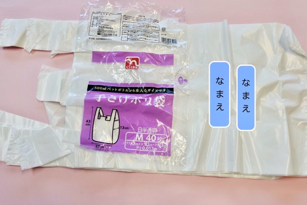・手さげポリ袋1セット(30枚〜40枚入り程度)に1枚1枚すべてに名前を記入