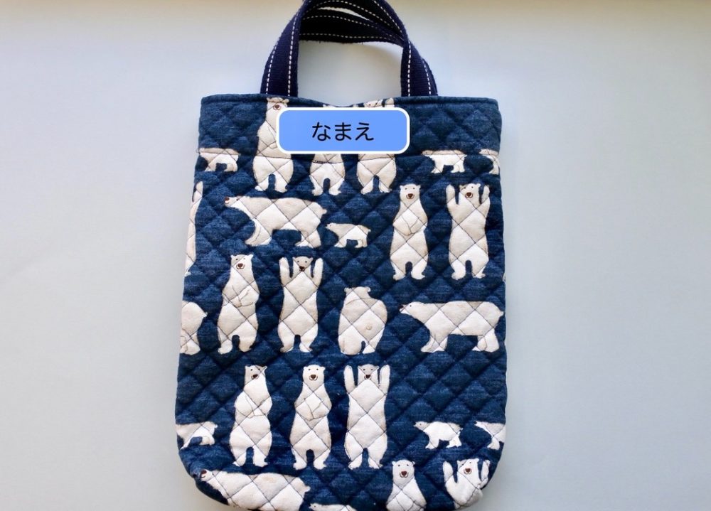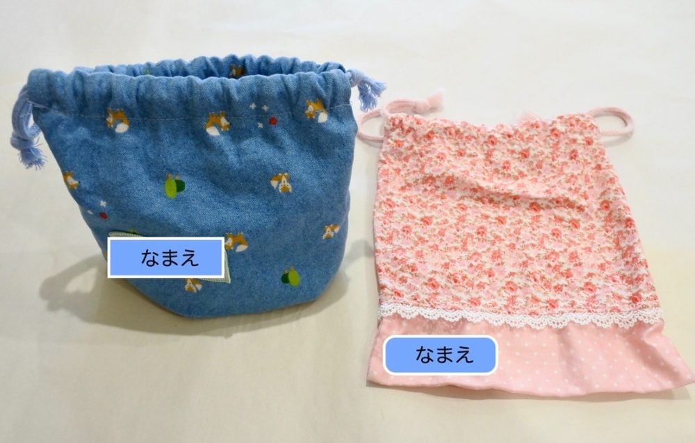 濃い色の布や柄物などで名前が見えにくい場合は、お名前シール、アイロンプリント、別布の縫い付けなど、ご家庭で用意しやすい方法で構いません。