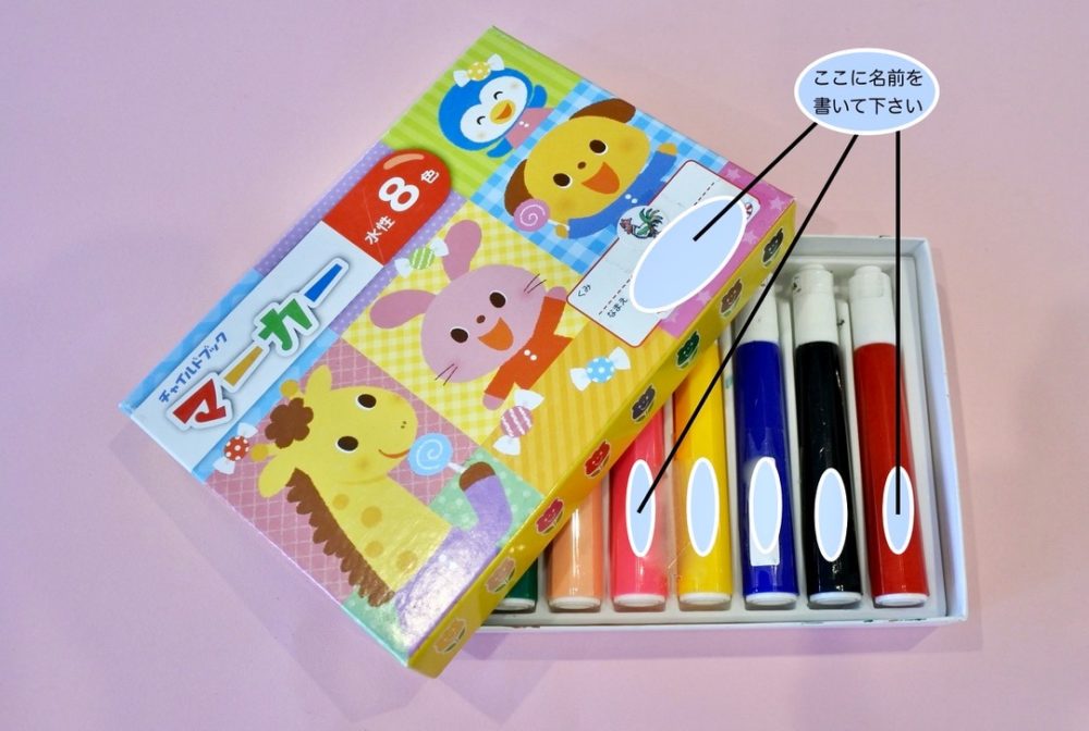 ・ペン本体とキャップに1本ずつ名前を記入(キャップを落としてしまうこともあるため)