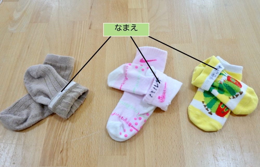 靴下の底や折り返した内側など見やすい所に名前を記入